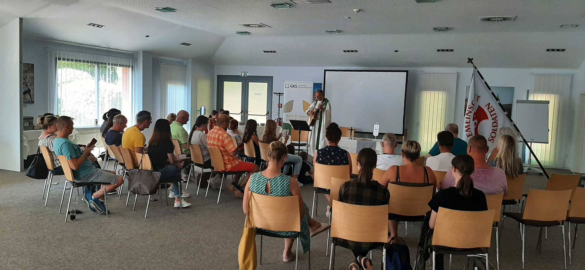 Vor dem Abendessen informierte F. Nowak traditionell über aktuelles aus der GKS Bundesebene und dem Bereich West. Besonders ausführlich wurde das diesjährige Hilfsprojekt des GKS-Bereich West „Wir für Euch“, vorgestellt. Dieses gemeinsame Projekt der katholischen Familienstiftung für Soldaten der KAS und der Militärseelsorge hat zum Ziel betroffene Soldatenfamilien bei der Bewältigung der nach der Flutkatastrophe (Ahrtal) anhaltenden Problemen zu helfen. Hier konnte ein Spendenbeitrag im dreistelligen Bereich, während der Veranstaltung erzielt werden.
